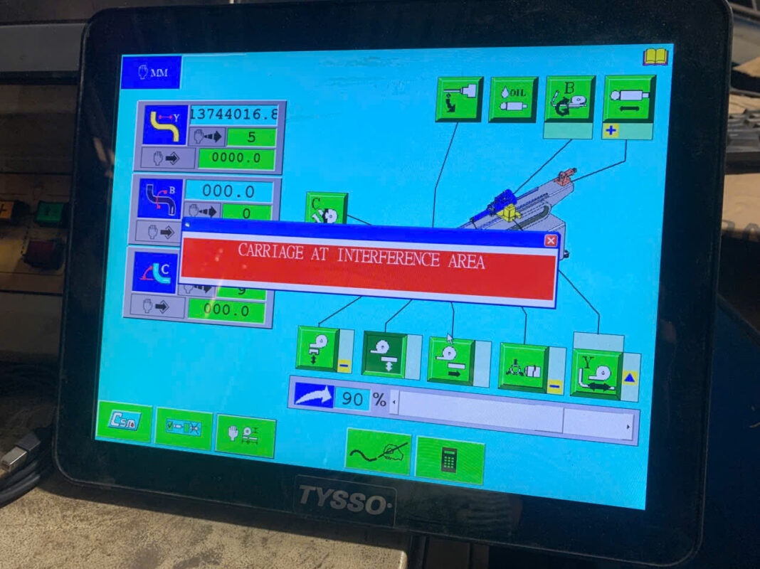 Máy uốn ống CNC đã qua sử dụng, khách hàng mua lại máy nhưng chưa nắm rõ quy trình vận hành và cấu hình hệ thống. Trong quá trình sử dụng, máy phát sinh lỗi truyền thông giữa CPU điều khiển và PLC, khiến hệ thống không thể hoạt động bình thường.